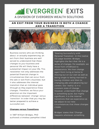 AN EXIT FROM YOUR BUSINESS IS BOTH A CHANGE AND A TRANSITION